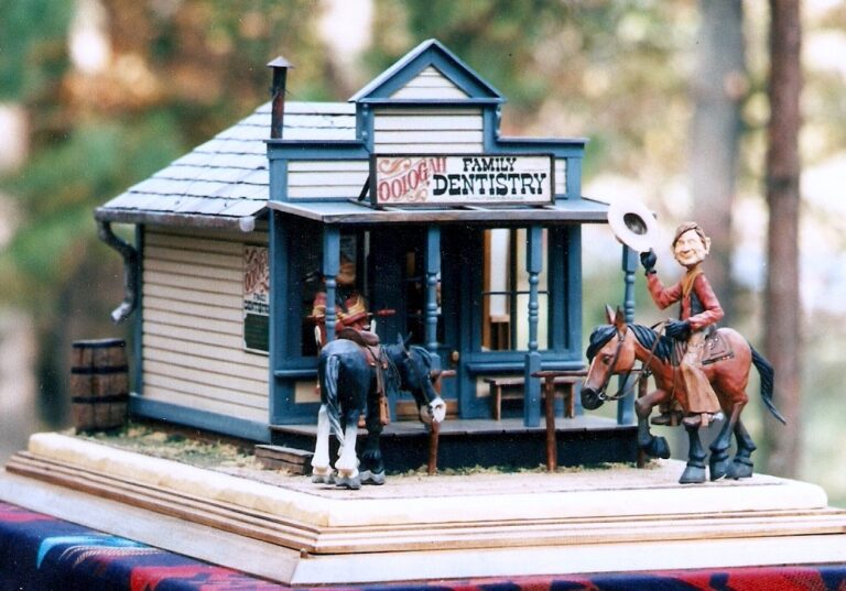 Jump on that pony and ride OUT WEST with one of America’s most noted and collected woodcarvers. By doing the necessary research and concentrating on the smallest detail, each piece is true to it’s time and setting. Lynn takes special pride in guaranteeing that every one of his characters is a one-of-a-kind, handcarved original. No plastic reproductionsl here. Lynn’s figures are All-American! His carvings have traveled the world and have appeared in numerous publications. You can find his carvings in the John Wayne Museum in Winterset, IA, the Will Rogers Memorial in Claremore, OK, and the Woolaroc Museum in Bartlesville, OK.
