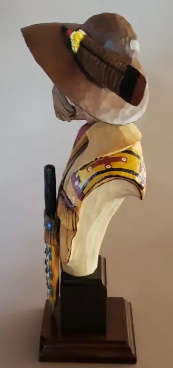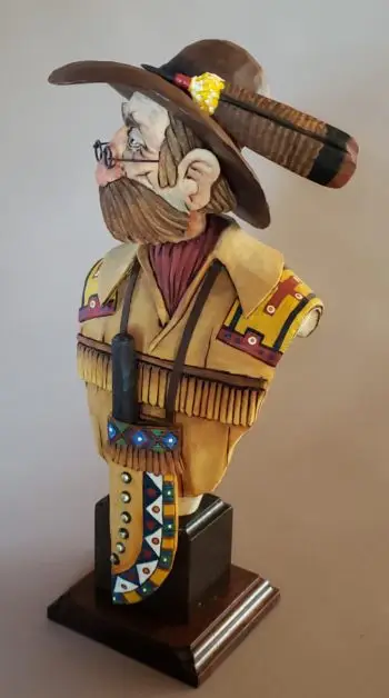 I’ve done this figure several times but always try to make him a little different. With this one he gets a new beaded designs on his buckskin shirt and knife sheath and a Turkey feather to spiff up his hat.