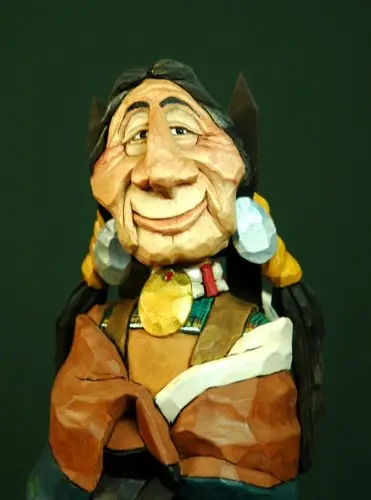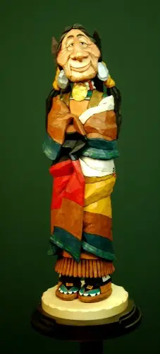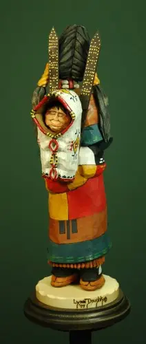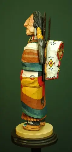 Here’s a cheery couple from back in 2007. Lots of color and great detail in the papoose and little one inside. I did some research to make sure that that was correct, right down to the brass tack decoration on the frame. Their not actual tacks but just drops of gold paint.
